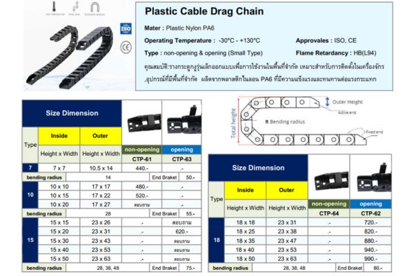 ตารางสรุปขนาด (Light Duty) Cable drag chain
