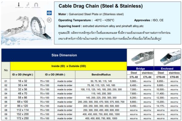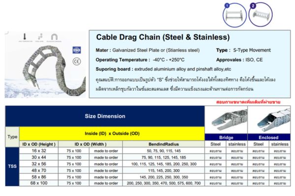 • ความยาวและ Bending Radius (ค่า R) ก็สามารถระบุได้ เพื่อให้เหมาะกับระยะการเคลื่อนที่ของเครื่องจักร